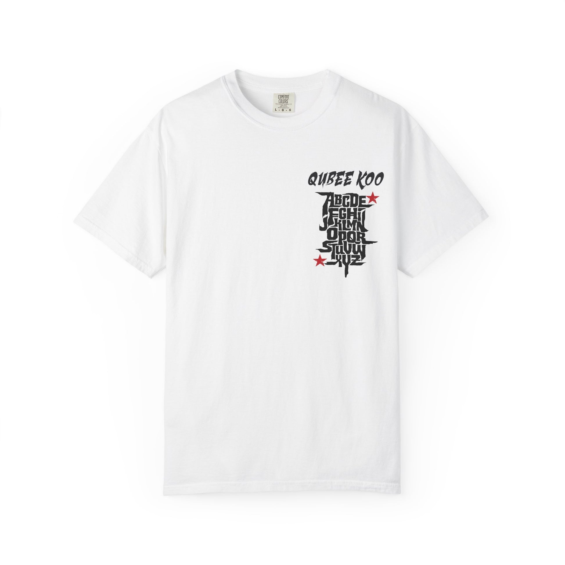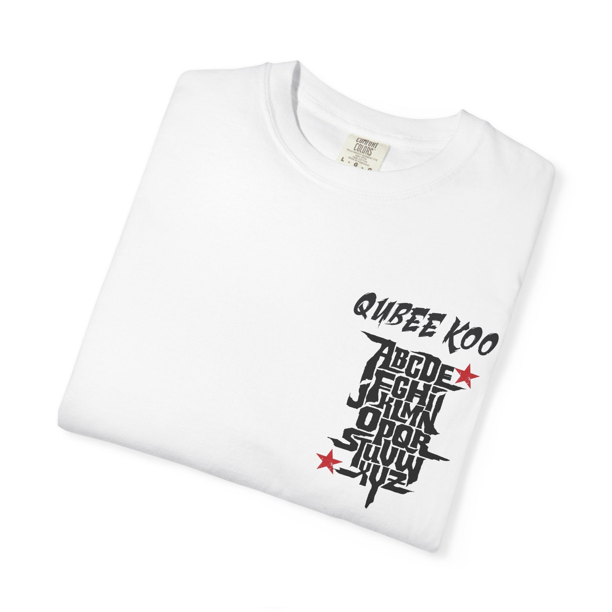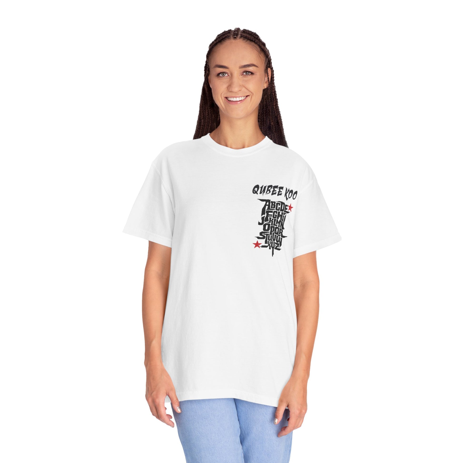 Unisex Garment-Dyed Graphic T-Shirt - Trendy Streetwear with 'Qubee Koo' Design Oromo alphabet